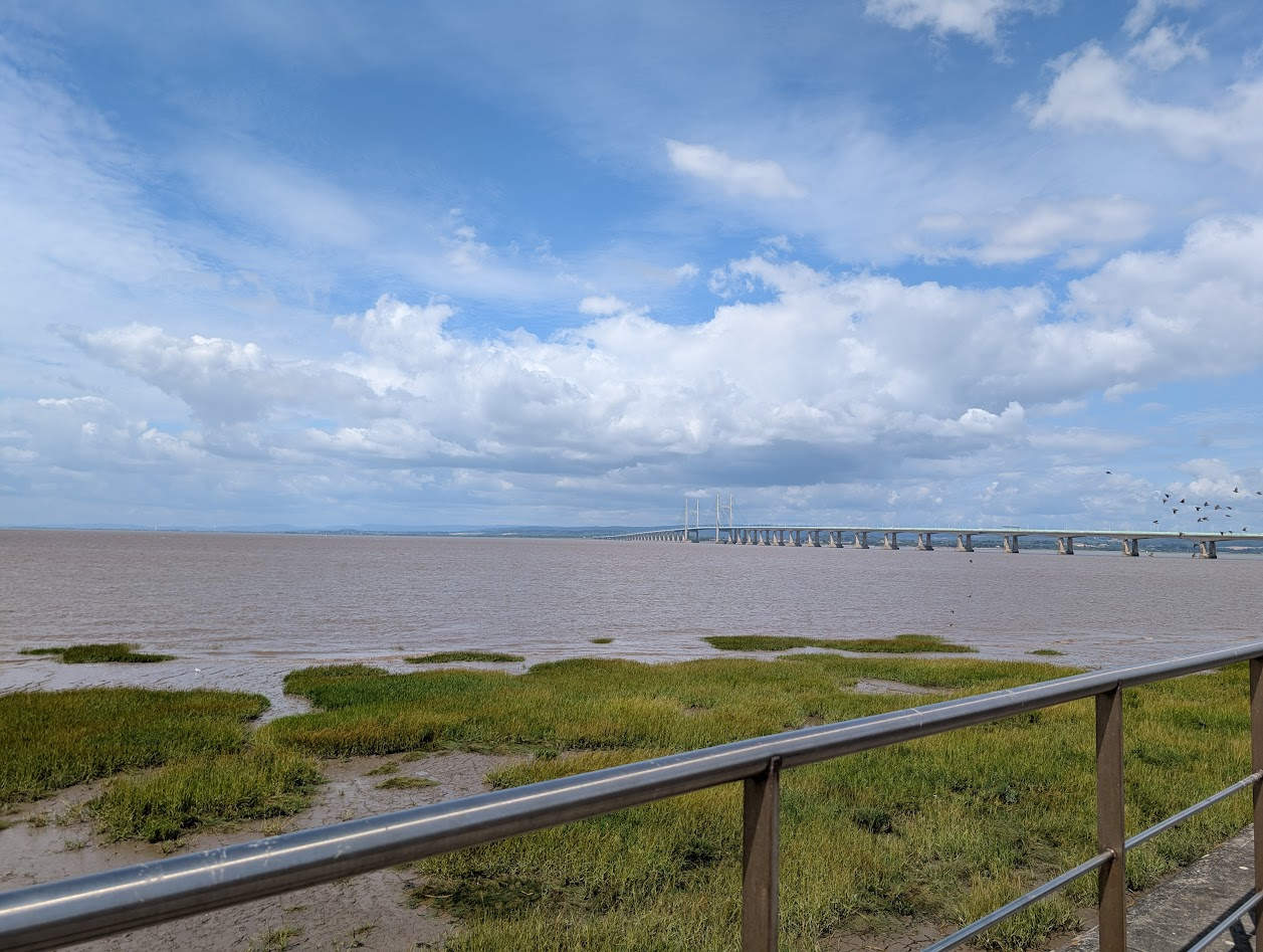 למחרת בבוקר יצאנו לדרך. אמש, בחושך, לא לגמרי הבנו לאן הגענו – ובכן, אנחנו במרכז העיר, באיזור בילויים ומסעדות, בניינים מודרניים ופארק שעשועים. אנחנו מתחילים לדווש ומיד מתחילות העליות – הגבעות של בריסטול ייתנו פייט הוגן לאלה של סן פרנסיסקו. מרוב ההתרגשות אנו שוכחים את המסורת הידועה של חציית מדינות- טבילת הגלגל בים, אבל המסלול עובר בצמוד לנהר ה-Severn הנשפך לים במרכזה של בריסטול. אנחנו מנצלים זאת ויורדים לחוף. הגשר מעל הנהר מרשים, החוף – פחות.