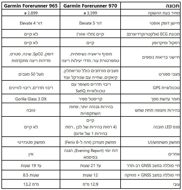 המפרט המלא של Forerunner 970: כל מה שצריך לדעת