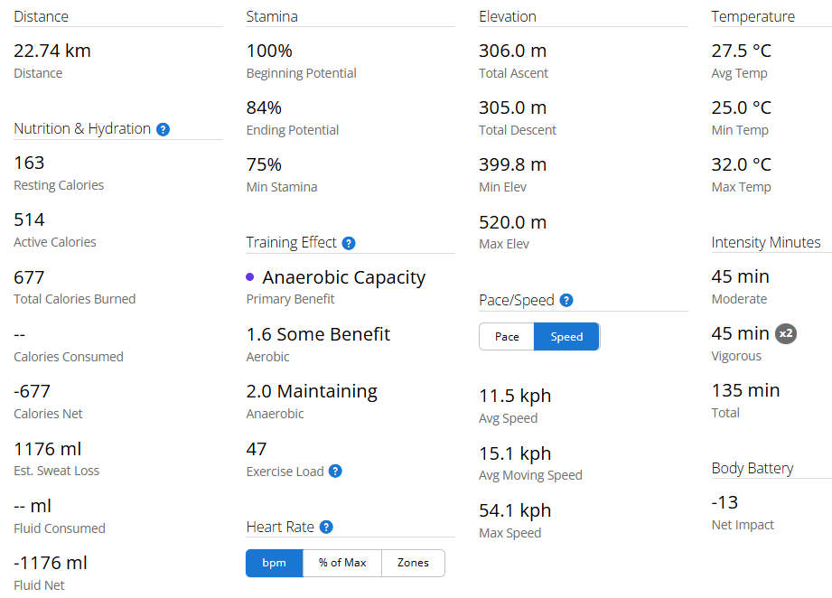 נתונים המתקבלים על השעון בסוף פעילות רכיבת שטח עם 970: