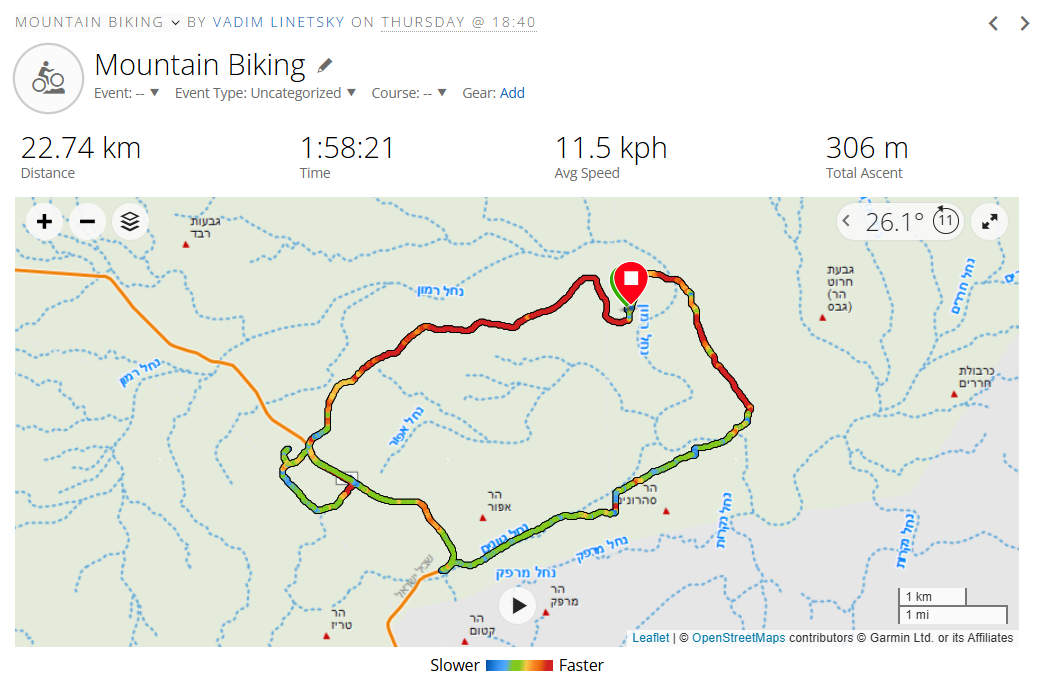 נתוני סיכום רכיבת שטח בשעון