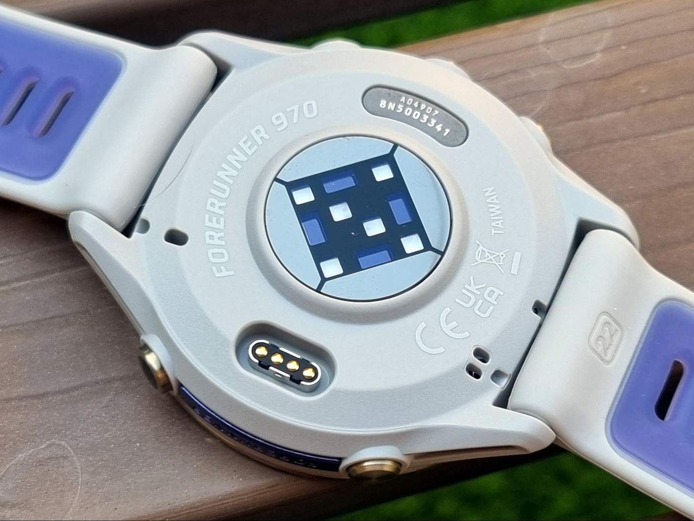 חומר העדשה בשעון השתדרג לזכוכית ספיר, מה שעד עכשיו היה שמור רק לשעוני Outdoor של החברה (פניקס, אפיקס ואינסטינקט). השדרוג הזה מכניס את 970 כאופציה ראויה לפעילויות Outdoor בלי חשש לפגיעה. גוף השעון עשוי חומר פולימרי חזק ויעמוד גם הוא בהתעללות מדודה ומבוקרת. חומר המסגרת (הטבעת סביב המסך) נשאר זהה ל-965 והוא טיטניום יוקרתי ונוצץ. הכפתורים בצבע הטבעת וגם לוגו הסדרה המופיע כתבליט על דופן צד סגולה – כל אלה לא מנסים להצניע את הבלינג הנוצץ של פרימיום ש-970 משדר.