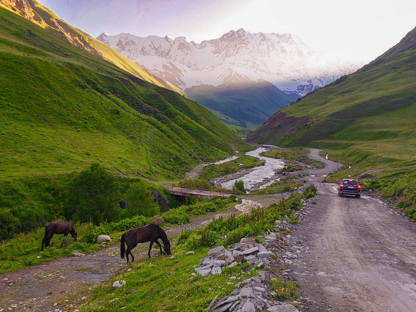 למה להרחיב? בגלל הקרחון. אפשר לצאת למסלול גם בעזרת רכב שטח מאושגולי, שיקרב אתכם לקרחון, אך עדיין תצטרכו ללכת חלק מהדרך. רכיבה על סוס היא גם אפשרות נהדרת, ואורכת בערך שעתיים של חוויית רכיבה בין שדות פתוחים, פרות, וסוסים חופשיים, עד שמגיעים ממש לרגלי הקרחון. שם אפשר לעצור, להסתובב קצת רגלית, לצלם, או פשוט לשבת מול הקרח ולשתוק. זו דרך מושלמת לסיים את השהות באושגולי ומשם – נסיעה חזרה למסטיה.
