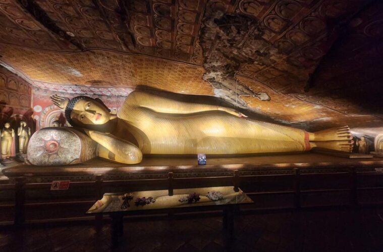 בבוקר יצאנו עם נהג מסוכנות Chami Tours לנסיעה של שלוש שעות צפונה לסיגיריה. התלבטתי מראש אם לנסוע. זה נראה כמו "עוד סלע". אבל בדיעבד זו הייתה ההחלטה הכי טובה. בדרך עצרנו במקדש המערות בדמבולה. קומפלקס בודהיסטי חצוב בסלע עם ציורי קיר ופסלים מוזהבים. כדי להיכנס צריך לעלות מדרגות רבות ולהקפיד על לבוש צנוע ללא גופיות או מכנסיים קצרים. המקדש מרשים הרבה יותר מהמקדש המוזהב שראינו בהמשך שהיה בכלל בשיפוצים.